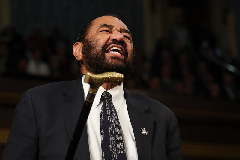 Rep. Al Green (D-TX) shouts out as U.S. President Donald Trump addresses a joint session of Congress at the U.S. Capitol on March 04, 2025 in Washington, DC. President Trump was expected to address Congress on his early achievements of his presidency and his upcoming legislative agenda. (Photo by Win McNamee/Getty Images)