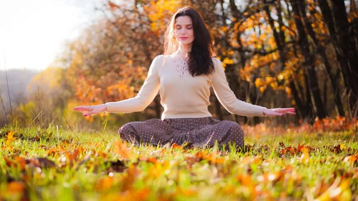 A woman meditates in Kyiv, Ukraine, on Nov. 7, 2023. Oleksii Pidsosonnyi/The Epoch Times