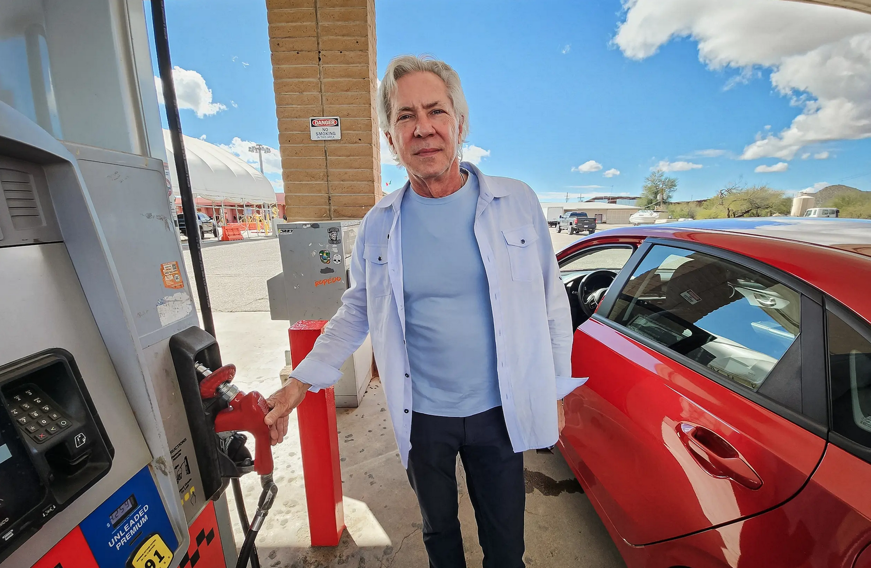 At another gas pump, Tom Lucas of Boise, Idaho, was on his way home from Rocky Point in Mexico.