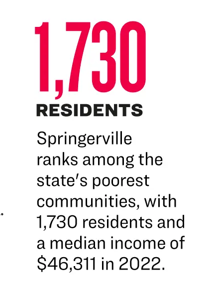 Located in Apache County, Springerville ranks among the state’s poorest communities, with 1,730 residents and a median income of $46,311 in 2022.