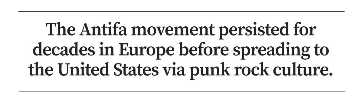 The Antifa movement persisted for decades in Europe before spreading to the United States via punk rock culture.