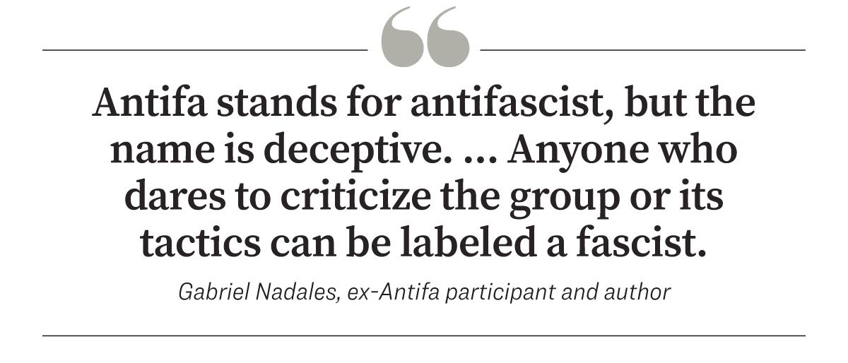 Gabriel Nadales, a self-described ex-Antifa participant, wrote in his 2020 book, “Antifa stands for antifascist, but the name is deceptive. … Anyone who dares to criticize the group or its tactics can be labeled a fascist.”