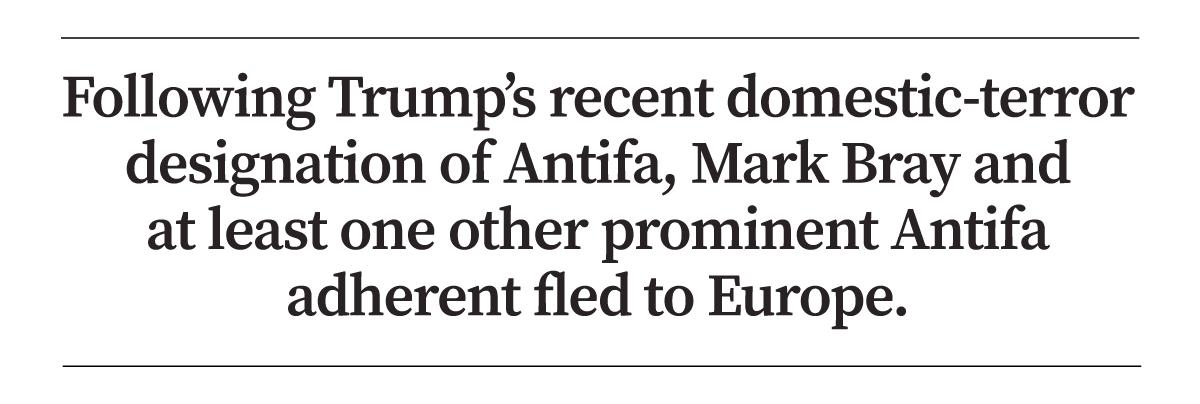 An Antifa organization that benefited from proceeds of Bray’s book announced that it had shut down donation-processing operations because of Trump’s order.