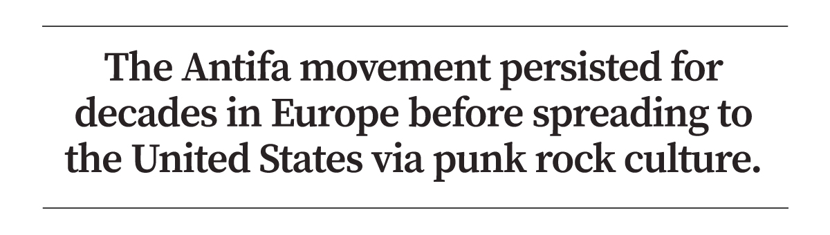 The Antifa movement persisted for decades in Europe before spreading to the United States via punk rock culture.