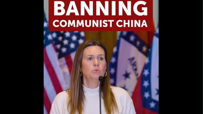 Arkansas Gov. @SarahHuckabee announces legislation package to divest state resources from China and ban companies linked to the CCP from purchasing land near critical infrastructure.pic.twitter.com/Deom7260n7
