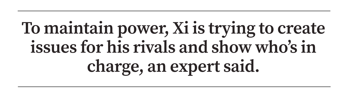 To maintain power, he said, Xi is trying to create issues for his rivals and show who’s in charge.