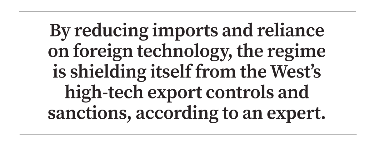 Economic and technological security is the foundation for national security; by reducing imports and reliance on foreign technology, the regime is shielding itself from the West’s high-tech export controls and sanctions, he said.
