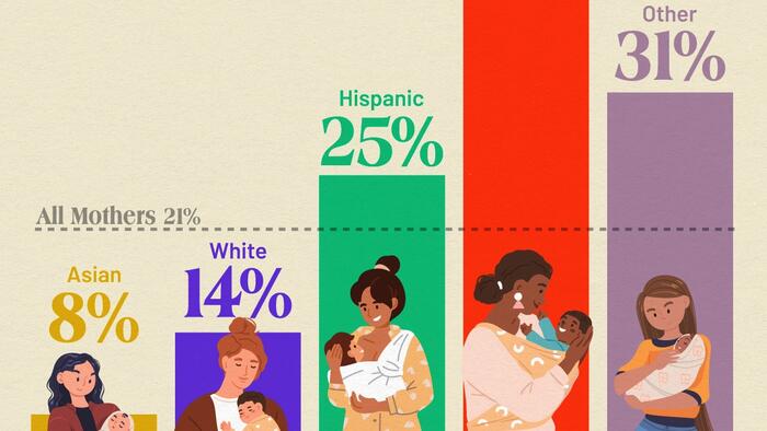 This graphic, via Visual Capitalist’s Bruno Venditti, represents the percentage of mothers in the U.S. who are single, by race/ethnicity, in 2023.