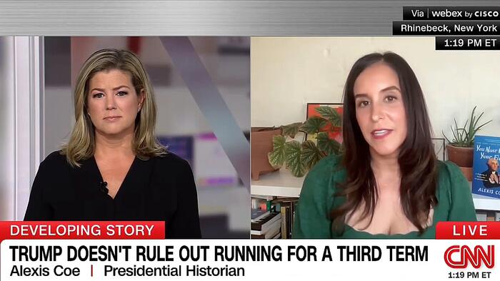CNN anchor Kaitlan Collins and leftist ‘Presidential historian’ Alexis Coe agreed Monday that talk of President Trump serving a third term is “a threat” and that it would be a “nightmare scenario”.