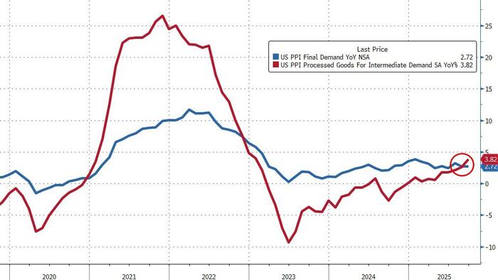 Core PPI (Ex Food & Energy) rose just 0.1% MoM, bringing Core PPI YoY down to +2.6%…