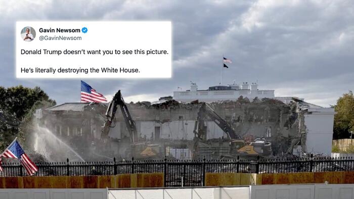 Democrats, led by greasy Gavin Newsom, are going all in on the latest fake talking point that President Trump is literally destroying the White House.