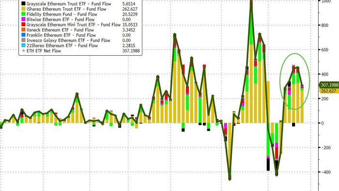 The latest trading day on Wednesday continued the trend, with nine Ether funds reaching $310.3 million in inflows, while the 11 spot Bitcoin funds saw just $81.1 million.