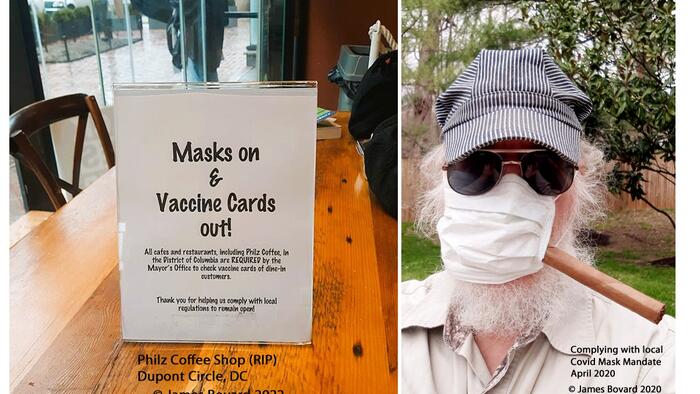 I stopped hosting hikes within DC city limits: I would be damned if I would condone Bowser’s biomedical caste system. But I did venture into DC in early 2022 to pay respects to an editor who was fleeing southward. Exiting at the Dupont Circle metro station, I briefly stepped out of a torrential downpour into an upscale coffee shop. Every table hosted a hefty warning sign: “Masks on & Vaccine Cards out!” Patrons were hectored: “All cafes and restaurants… are REQUIRED by the Mayor’s Office to check vaccine cards of dine-in customers. Thank you for helping us comply with local regulations to remain open!” Why didn’t that establishment just advertise the slogan: “Come Sip with the Gestapo!” I skedaddled before anybody asked to see a vax passport.
