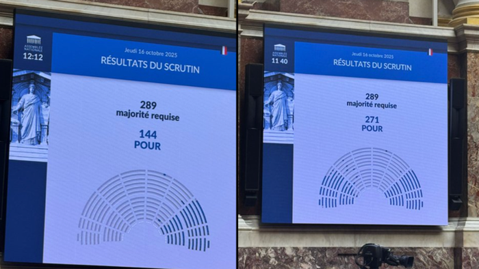 The first motion, brought by the far-left France Unbowed (LFI), secured 271 votes, falling short of the 289 required to oust the government. A second challenge from Marine Le Pen’s National Rally was backed by only 144 votes but needed 289 to pass.