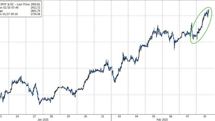 Hot on the heels of the People’s Bank of China’s (PBOC) recent resumption of official gold purchases (after a six-month pause), and amid ongoing economic turmoil domestically and trade-war threats geopolitically, Beijing has launched a pilot program that allows insurers to buy gold for the first time could free up billions of dollars of investment in the metal, adding further impetus to a record-setting rally, hitting a new high (in USD) above $2900 this morning…