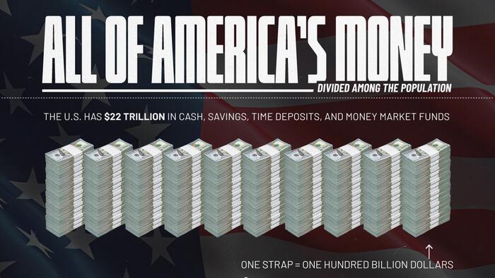First, we had to approximate a figure for all of America’s money. This data comes from the Federal Reserve, which tracks M2 money supply in the country.