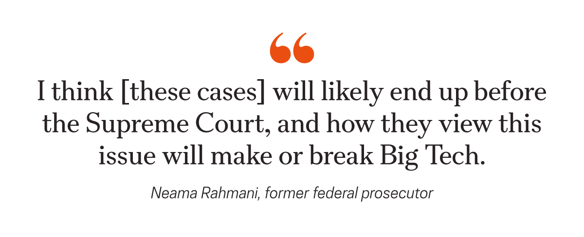 “I think they will likely end up before the Supreme Court, and how they view this issue will make or break Big Tech, because I think we’re going to see lots of copycat lawsuits, and the judgments and fines are going to rack up into the billions and billions of dollars.”
