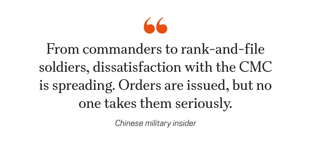 “From commanders to rank-and-file soldiers, dissatisfaction with the Central Military Commission is spreading.