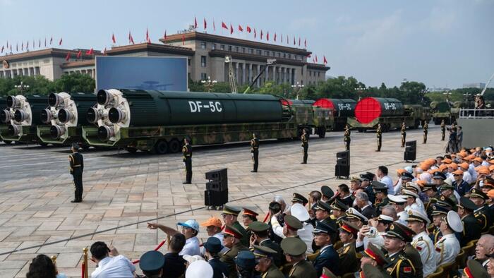 China has 96 DF-31 mobile ICBMs each with 1–3 RVs; 84 DF-41 ICBMs with 2–10 RVs; 40 DF-5 B/C liquid fuel silo based ICBMs with 10 RVs (DF-5C); 320–360 silo based DF-31/41 in three ICBM fields. China recently show-cased the new DF-61 ICBM, close in size to the DF-41 and more technologically advanced. A recent DIA report stated that China would have 700 ICBMs by 2035, some 75 percent greater than the United States.