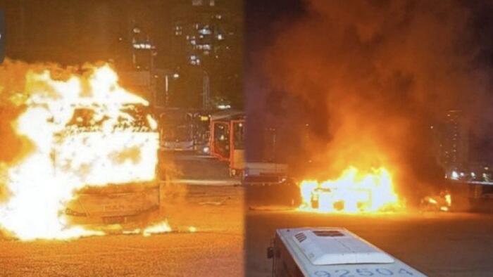 No injuries have been reported, but police said at least two other unexploded devices were discovered on nearby parked buses. A search for suspects and evidence as to who is behind the attacks is underway.