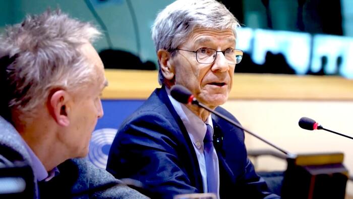 European MPs at Jeffery Sach’s presentation. (Screenshot/Michael von der Schulenburg YouTube page.)