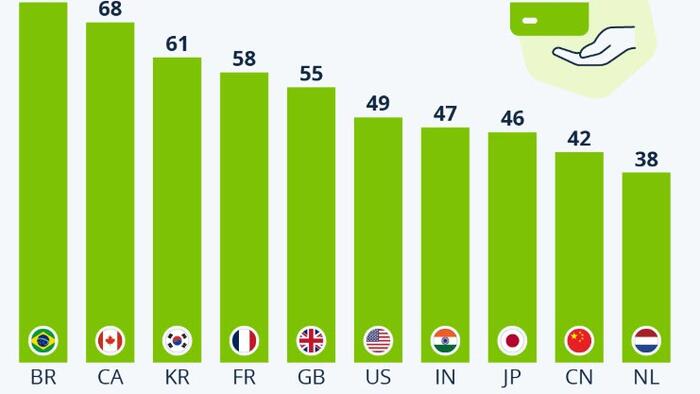 As Statista’s Anna Fleck shows in the chart below, credit card ownership is also high in Canada, at 68 percent.