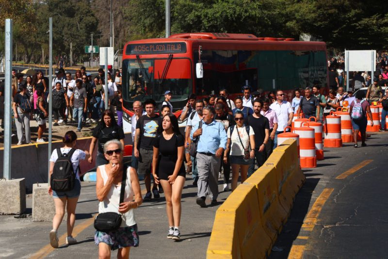 People walk to take public transportation after the subway closed operations due to the massive power outage affecting the country on February 25, 2025 in Santiago, Chile. (Photo by Marcelo Hernandez/Getty Images)