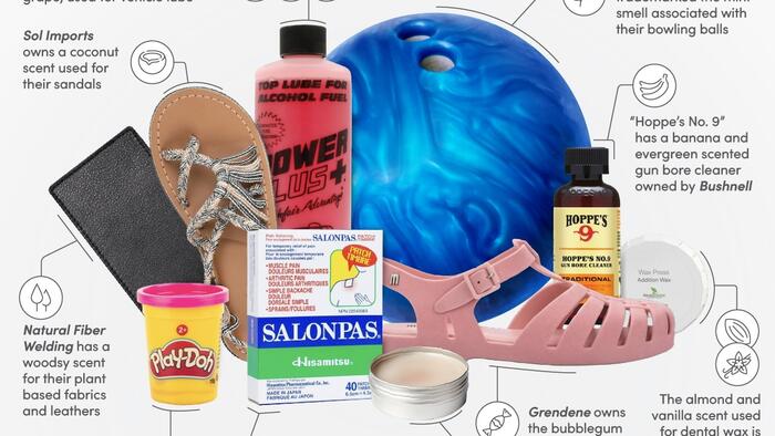 Interestingly, many of the other trademarked aromas are used to brand more practical, industrial products. The list includes fruity smell used in vehicle lube, and a banana/evergreen scent used in gun bore cleaner.