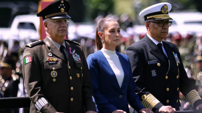 Mexico President Claudia Sheinbaum flanked by senior security officials during October 2024 inaugural ceremonies