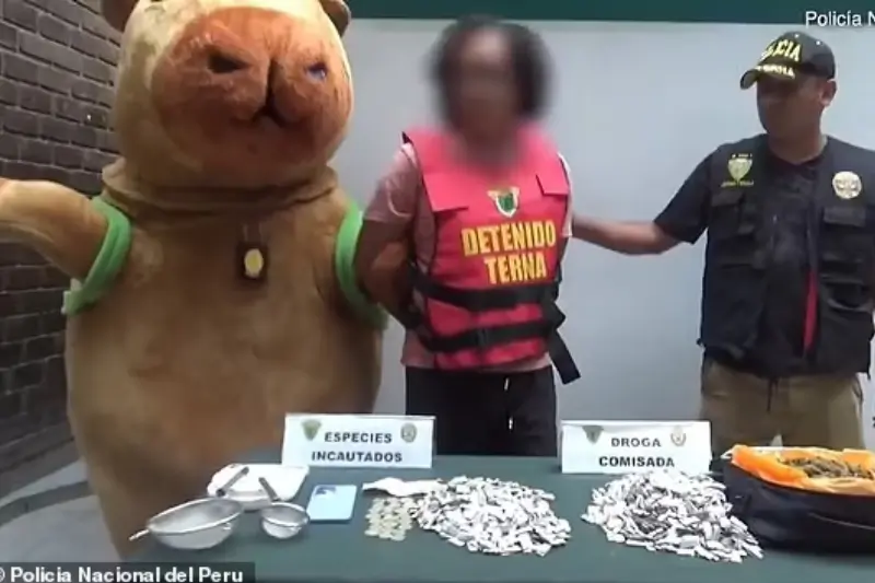 A Peruvian policeman dressed as a capybara to make an arrest in a drug probe.