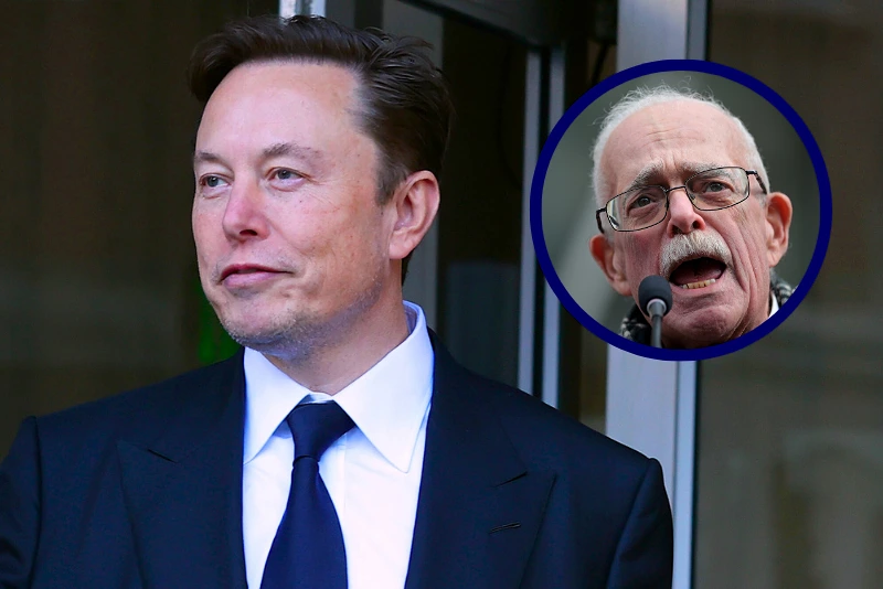 (L) Tesla CEO Elon Musk leaves the Phillip Burton Federal Building. (Photo by Justin Sullivan/Getty Images) / (R) U.S. Rep. Gerry Connolly (D-VA) speaks at a press conference outside of USAID headquarters on February 03, 2025 in Washington, DC. (Photo by Kayla Bartkowski/Getty Images)