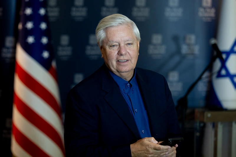 TEL AVIV, ISRAEL – AUGUST 28: U.S Senator Lindsey Graham attends a press conference on August 28, 2025 in Tel Aviv, Israel. (Amir Levy/Getty Images)