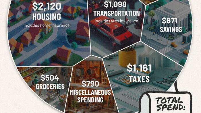 Taken together, housing (25%), taxes (14%), and savings (10%) account for nearly half of the average American household’s monthly budget.