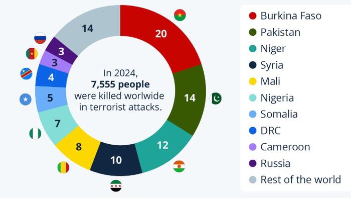 Niger was the country to see the biggest increase in terrorism deaths year-on-year, rising by 94 percent to a total of 930 people.