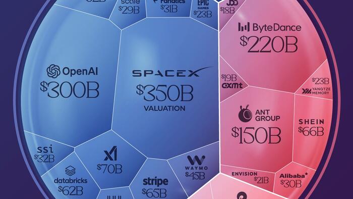 This graphic, via Visual Capitalist’s Dorothy Neufeld, shows the most valuable unicorn companies in 2025, based on data from Crunchbase.