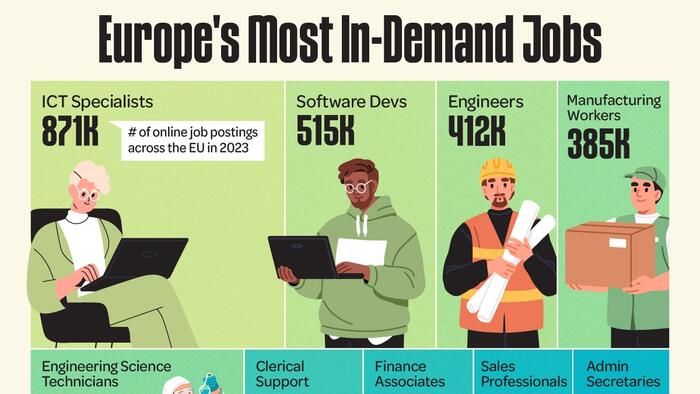 Data for this graphic is from Eurostat which looked through hundreds of hiring websites in 2023.