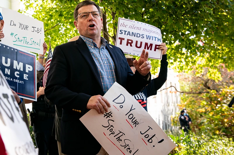 Ed Martin, president of the Phyllis Schlafly Eagles, a conservative political organization based in St. Louis, MO, speaks during a news conference outside the Republican National Committee headquarters on Capitol Hill, on November 5, 2020 in Washington, DC. (Photo by Al Drago/Getty Images)