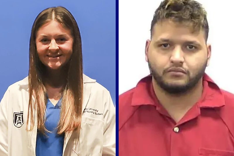 This undated image provided by Augusta University shows Laken Hope Riley, a nursing student whose body was found Thursday, Feb. 22, 2024, on the University of Georgia campus in Athens, Ga., after not returning from a run. (Augusta University via AP, File) / (R) Jose Ibarra. (Photo via: Clarke County Sheriff’s Office)