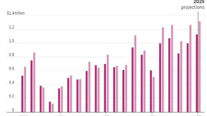 The approved narrative seems to be that Corporate America would be investing these trillions in new productivity, except for all this uncertainty about tariffs. But this explanation conveniently ignores the enormous annual buybacks that preceded the present tariff kerfuffle.