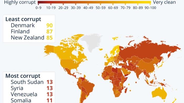 The opposite end of the index saw South Sudan scoring just 8 points, making it the world’s most corruption-stricken country.