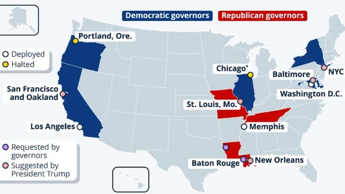 While troops were briefly deployed in Chicago, they were blocked from activation by a judge on October 9. Similarly, court rulings have stopped the rollout of Oregon’s own National Guard members to Portland, as well as the deployment of National Guard troops from California to Portland.