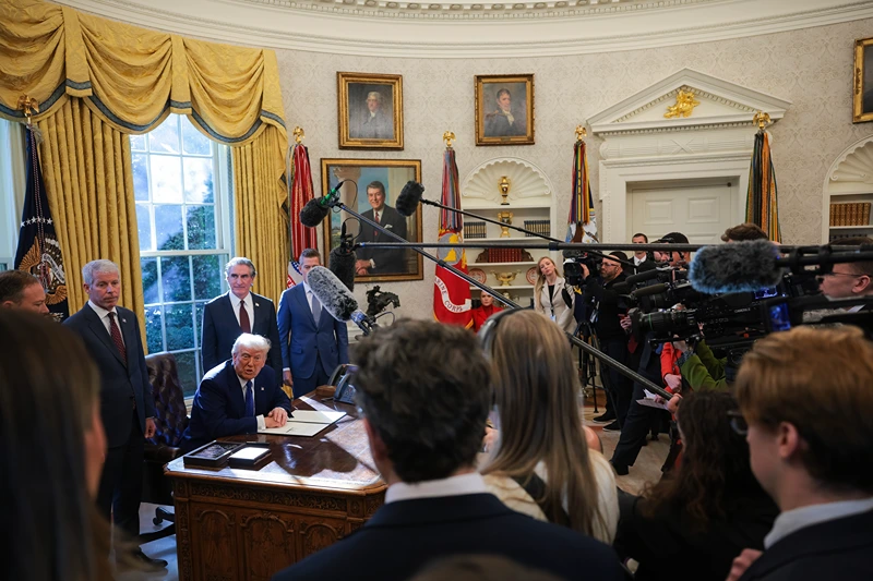 During the Biden administration, right-wing outlets such as One America News (OAN) and Newsmax were officially banned from the briefing room as well — led by former press secretary Karine Jean-Pierre. Nevertheless, both networks are now allowed back in the Oval Office briefing room as the Trump administration has restored their press passes.